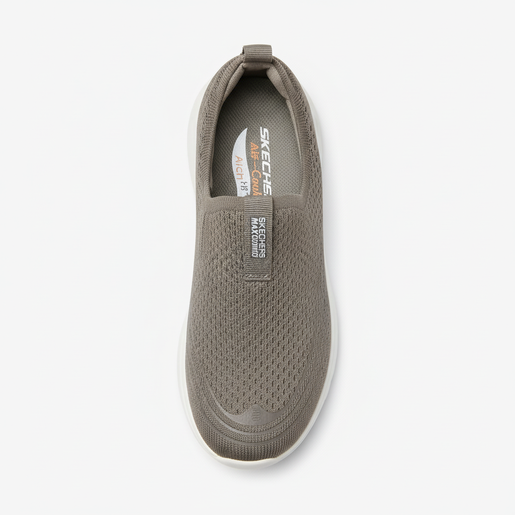 Experience ultimate comfort with the Skechers Max Cushion slip-on sneaker in versatile KHAKI. Featuring engineered mesh knit upper with perforated details for breathability, air-cooled memory foam insole for superior cushioning, and a lightweight chunky platform sole for all-day support. The easy slip-on design with pull tab makes these perfect for active lifestyles. Step into cloud-like comfort with every stride.